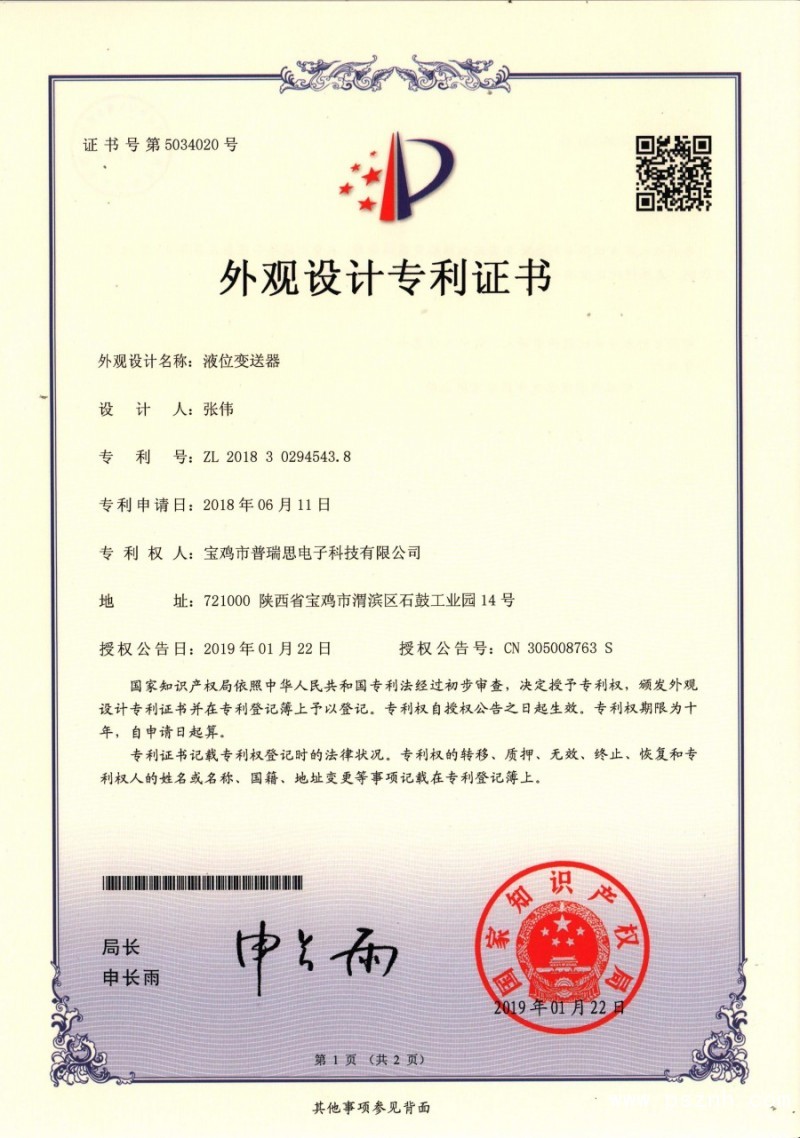 外观设计专利证书2